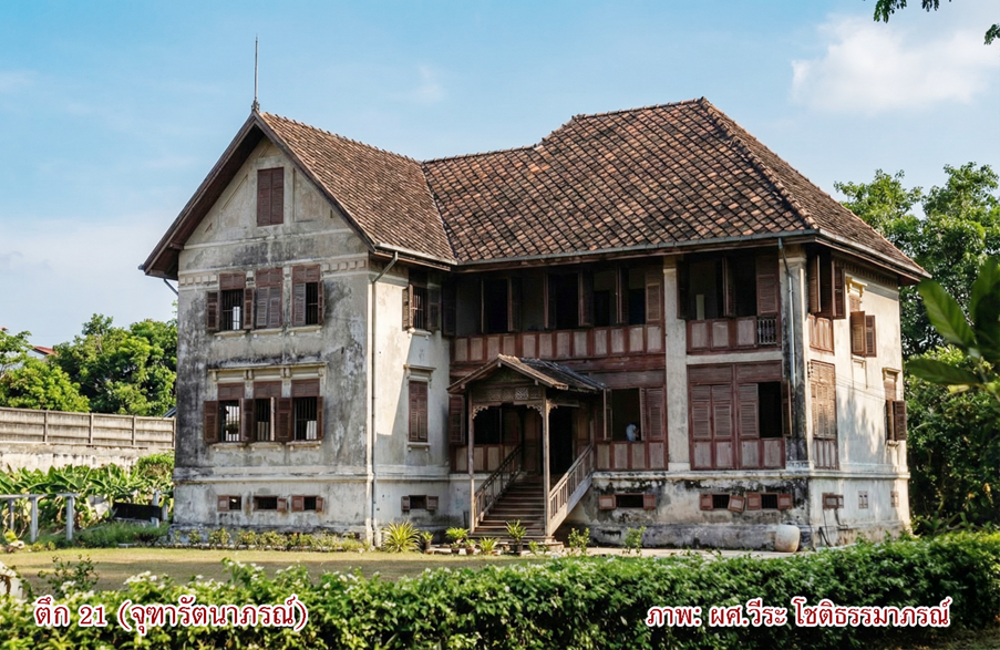 ตึก 21 ตึกนี้ตั้งตามแนวกำแพงด้านตะวันตกตอนใกล้มุมบรรจบกำแพงด้านเหนือ เดิมเป็นตำหนักที่ประทับของพระเจ้าบรมวงศ์เธอพระองค์เจ้าจุฑารัตนราชกุมารี พระราชธิดาองค์ที่ 7 ในพระบาทสมเด็จพระจุลจอมเกล้าเจ้าอยู่หัว และเจ้าจอมมารดามรกฏ ประสูติเมื่อวันที่ 17 ธันวาคม พ.ศ. 2415 สิ้นพระชนม์ที่ตึก 21 นี้ เมื่อวันที่ 31 พฤษภาคม พ.ศ. 2473 สิริพระชันษา 58 พรรษา