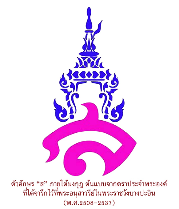 ในปี พ.ศ. 2508 วิทยาลัยครูสวนสุนันทา มีความประสงค์จะเทิดพระเกียรติสมเด็จพระนางเจ้าสุนันทากุมารีรัตน์ โดยจะขอใช้ตราประจำพระองค์ที่ได้จารึกไว้ที่พระอนุสาวรีย์ในพระราชวังบางปะอินมาเป็นต้นแบบ โดยได้ขอพระบรมราชานุญาต พระบาทสมเด็จพระเจ้าอยู่หัวภูมิพลอดุลยเดชฯ ซึ่งทรงมีพระบรมราชานุญาตตามที่วิทยาลัยต้องการ จึงได้เปลี่ยนเครื่องหมายเป็นตัวอักษร “ส” ภายใต้มงกุฎ เครื่องหมายนี้ใช้จนถึงปี พ.ศ. 2537